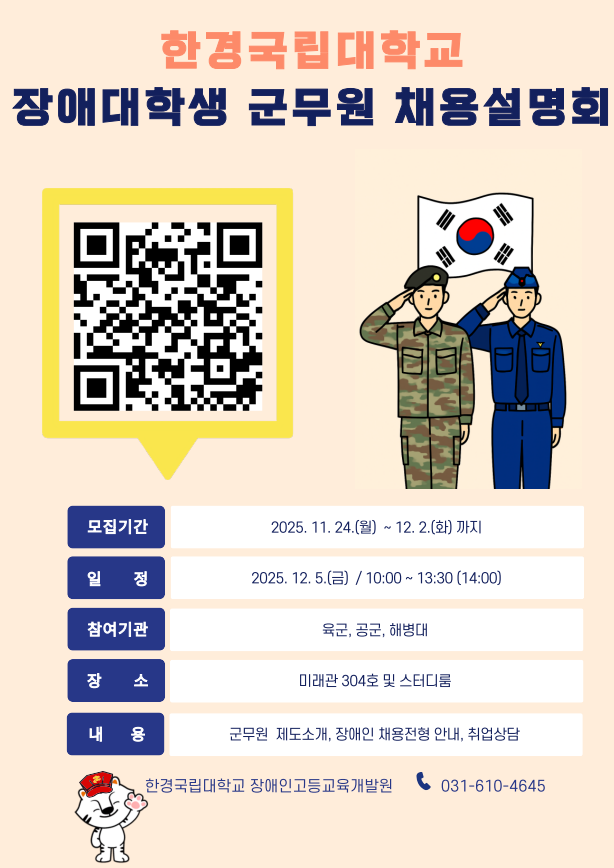 [홍보안내]한경국립대학교 장애대학생 군무원 채용설명회 |