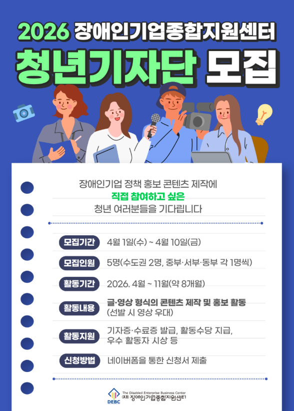 [홍보 안내]「2026년 장애인기업종합지원센터 청년기자단」모집 안내 및 홍보 |